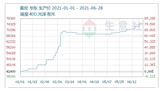 Since the beginning of this year, the domestic spandex market has been rising rapidly. It has been rising since mid-May this year. The price of spandex has climbed to a 10-year high. As of June 28, the price of spandex has risen to 100% per ton. 75,000 yuan per ton, which is about to hit 80,000 yuan per ton, a year-on-year increase of 138.10%. Judging from the overall situation of spandex in the first half of this year, spandex raw material end companies have rebounded steadily. At the same time, the demand for spandex raw materials from downstream end customers has not decreased but increased. Starting from the third quarter, spandex is about to enter the traditional peak season of the footwear and apparel industry, with a good trend.