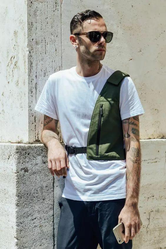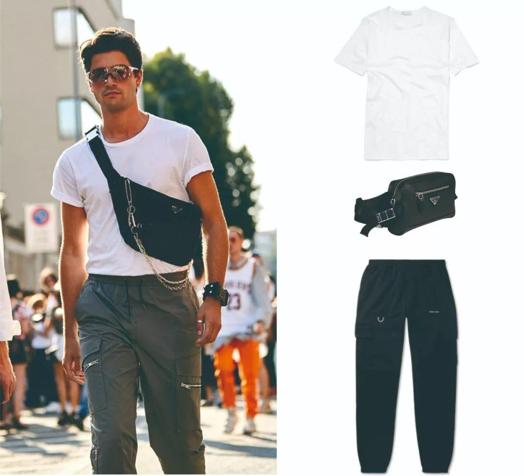 Pairing a white T-shirt with functional overalls makes the look instantly trendy. Although the style of the pants is more individual, the look looks very complete when paired with a simple white T-shirt, and it can well combine the characteristics of the bag and pants. Set off, the styling has clear priorities.