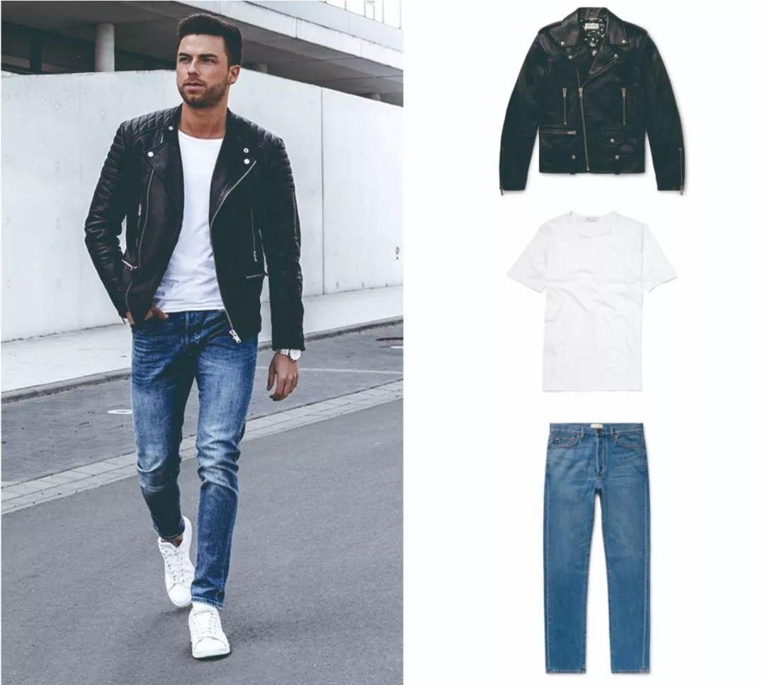 The look is classic when paired with a denim jacket or a motorcycle jacket. When paired with these short jackets, choose a T-shirt that fits as closely as possible to make the look more neat. Can wear a rugged and tough manly style.