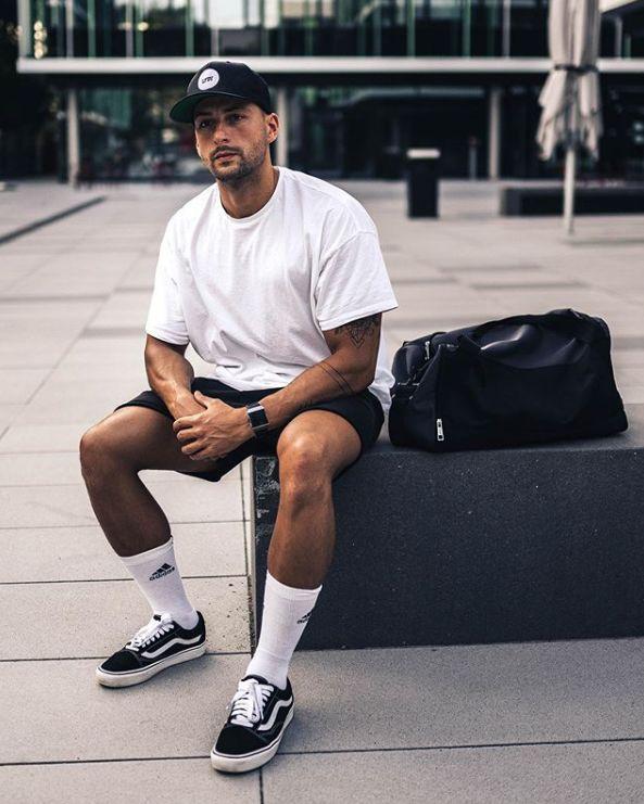 Sneakers don’t need to be expensive. Some classic skate shoes or cloth shoes can enrich the look. Adding accessories such as baseball caps and sports white socks can complete the look.