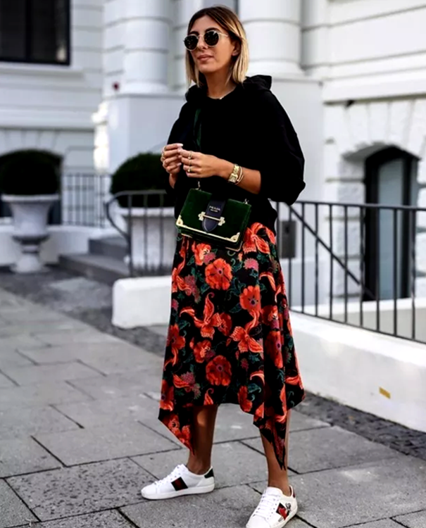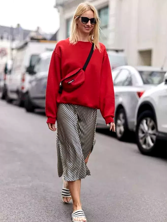 In this way, middle-aged women will feel very decent, generous and elegant when wearing a fitted sweatshirt. Moreover, the whole look of a middle-aged woman will look very neat, and she can be fashionable throughout the spring.