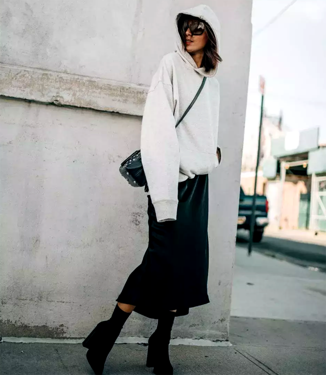 However, middle-aged women should not choose sweatshirts that are too loose. Because the design of loose sweatshirts, for middle-aged women who are a little fat, not only does not achieve the effect of slimming, but also makes middle-aged women look bloated.