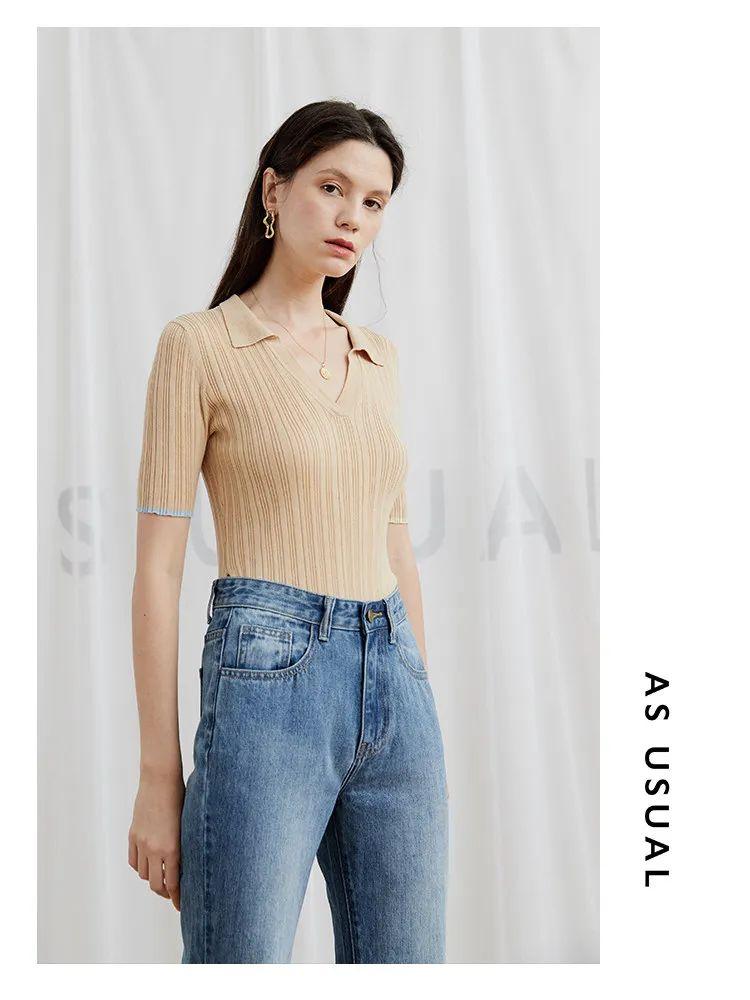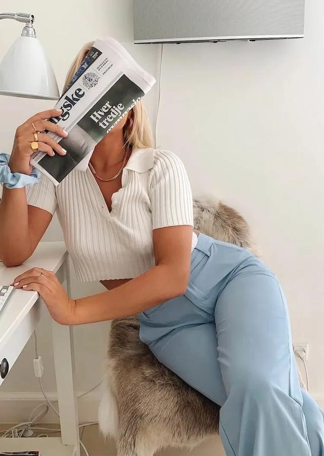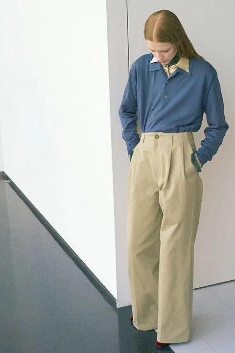 Knitted POLO shirts are generally slim-fitting, so many experts like to use them Pair with wide-leg pants. If the style is longer, you can tie the hem into the pants in order to show off your waist and long legs.