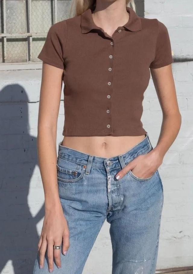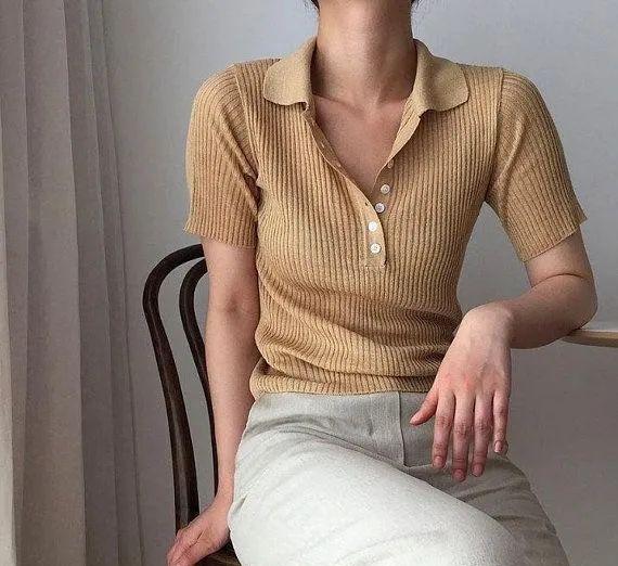 Polo shirts also have ultra-short styles that are more popular this year, and can also be paired with high-waisted straight pants or These are wide-leg pants, casual and chic. Or a skirt is also acceptable. The matching with the skirt will be discussed below.