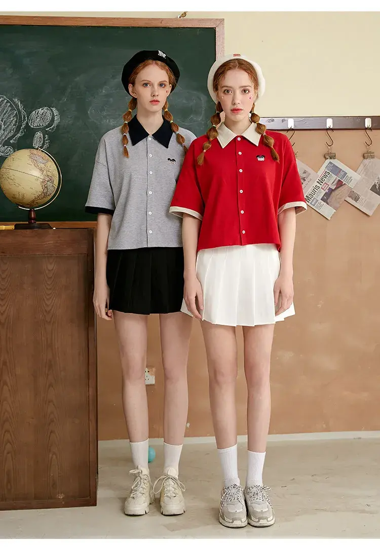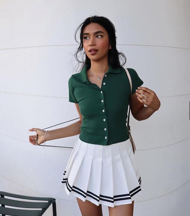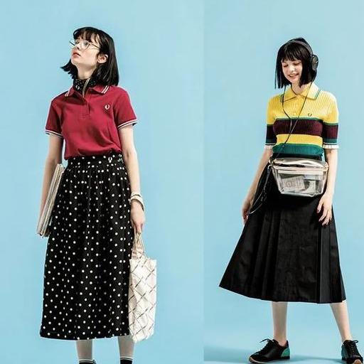 In American style Polo shirts, many are shorter than the knee and pleated. Half skirt is also an expression of academic style.