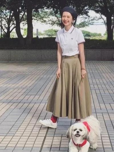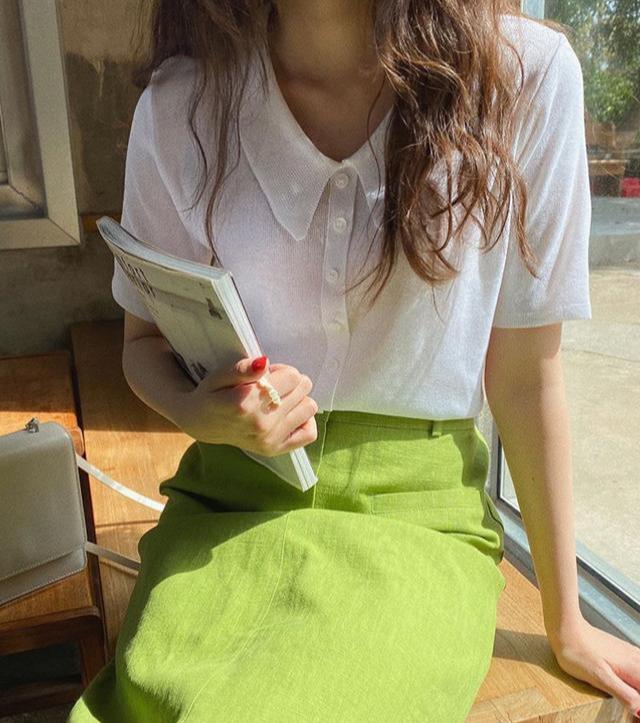 A white Polo shirt can also be paired with a colorful skirt. It is not only brighter, but also the overall tone looks cooler and the incarnation is sweeter. clothing style.