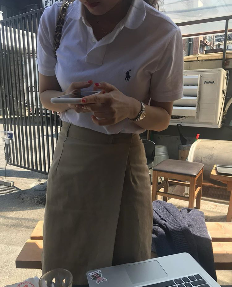 POLO shirts can also be paired with something more feminine. A white POLO shirt paired with a denim hip skirt gives a very clean look. A hip-hugging skirt It can show your little sexy.