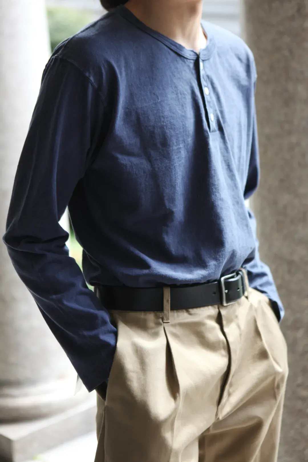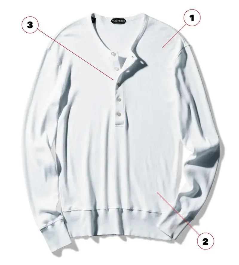 Like the example of Tom Ford’s Henley shirt, the slightly wider placket is visible to the naked eye as solid and crisp. With the wider 5-button setting, threaded cuffs and hem, it is obviously better than the henley shirt. Underwear is oriented to be more tough and stylish, suitable for outer wear.