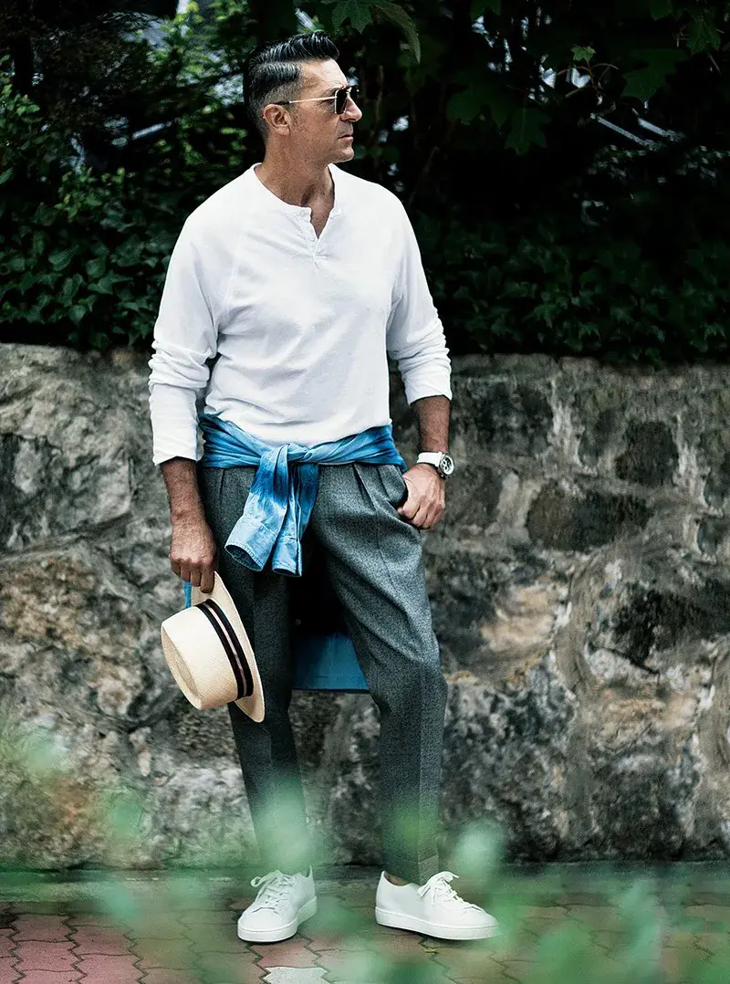 Look at the Henley shirt worn by handsome uncle Girolamo Panzetta. It comes from the Japanese brand WISS.KEY.