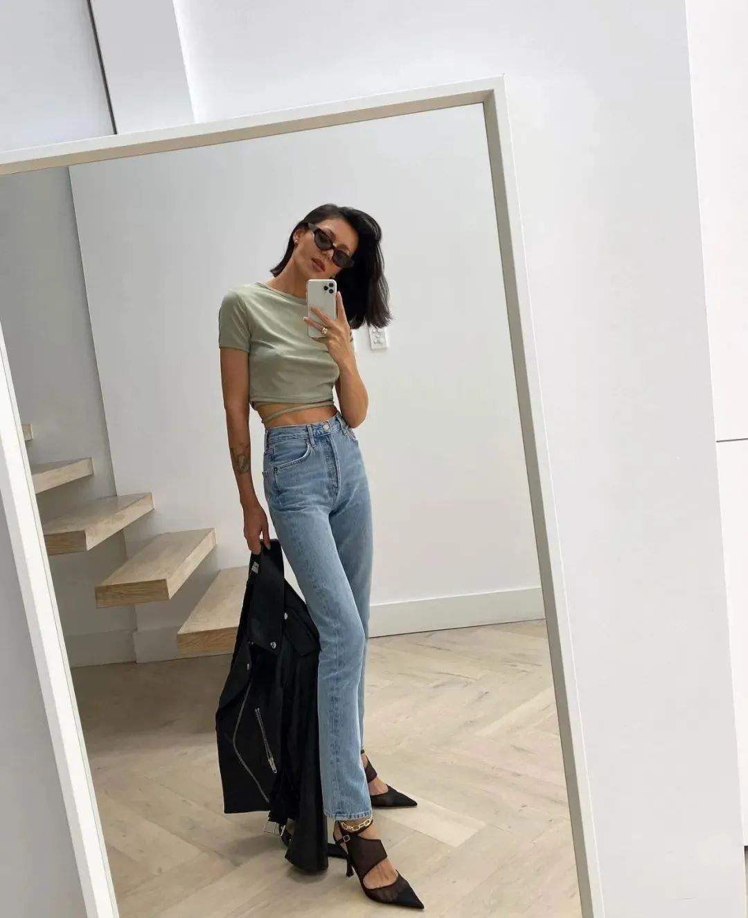 What should I do if I have an average body shape and want to try a short T-shirt? Just wear it with a jacket! A jacket can just cover up the shortcomings of the figure, and can also slightly expose the waist and abdomen, instantly optimizing the proportions and making you look slimmer and thinner.