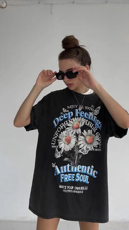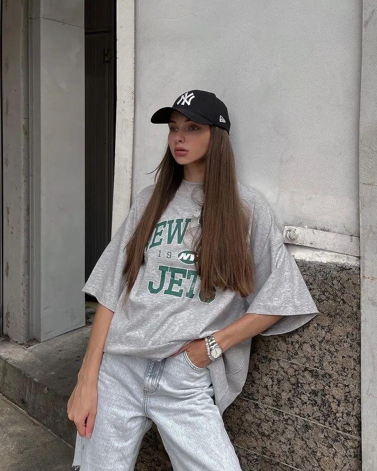 A loose, one-size-fits-all T-shirt is especially suitable for summer. It has a more relaxed feel than a fitted T-shirt, making it comfortable and comfortable to wear.