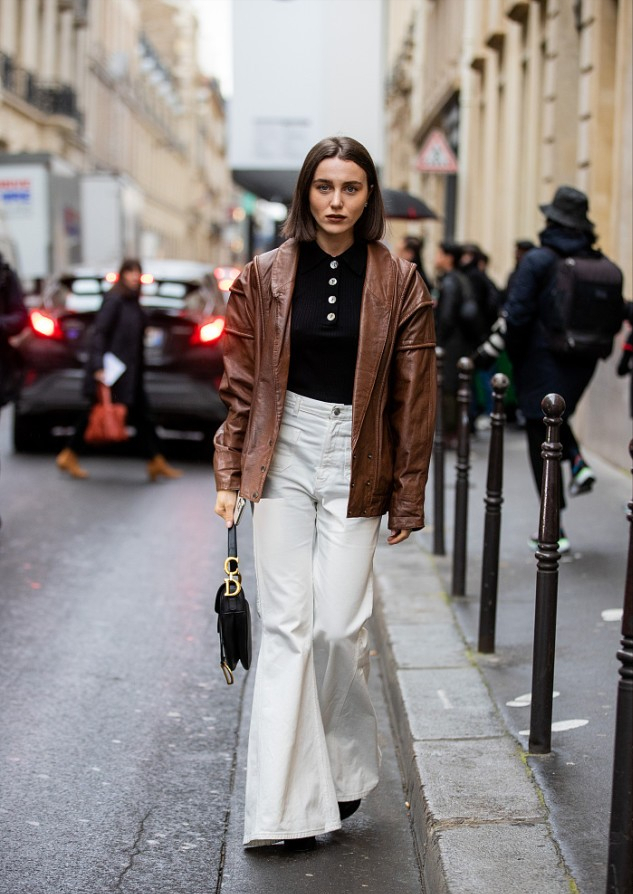 Leather jackets are mid-length styles and are more suitable to be worn with trousers. The combination of wide-leg pants, bell-bottom pants and POLO shirts can form a short-top and long-bottom style, making the outfit more beautiful.