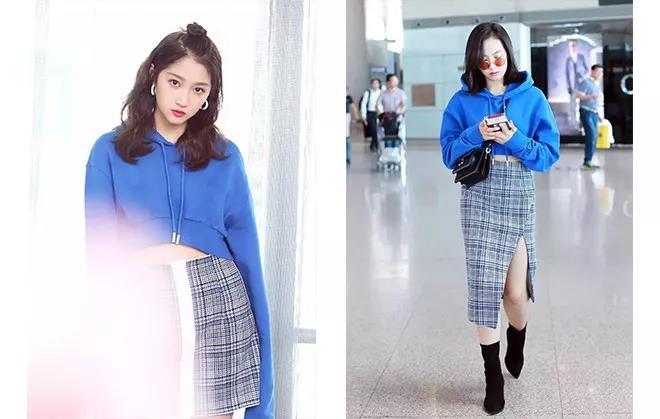 Very Beautiful mix and match style, a very casual short sweatshirt, plus a feminine skirt, the mix and match style can always bring surprises! The sweatshirt is short, exposing a small part of the waist, adding to the sense of cuteness and liveliness. At the same time, the slit design of the skirt exposes one side of her beautiful legs. Guan Xiaotong is very feminine now, and she matches Song Qian’s shirt in the air. There is going to be a girl-man collision in autumn and winter! The matching boots are also a highlight~