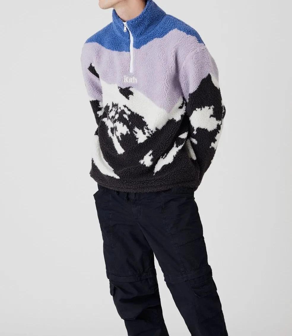 For example, this polar fleece half-cardigan jacket from this year’s autumn and winter series still plays with the collision of color blocks. The polar fleece is dyed to outline an artistic snow mountain pattern. With the addition of a 3D embroidered LOGO on the chest to indicate identity, the overall visual effect is impressive.
