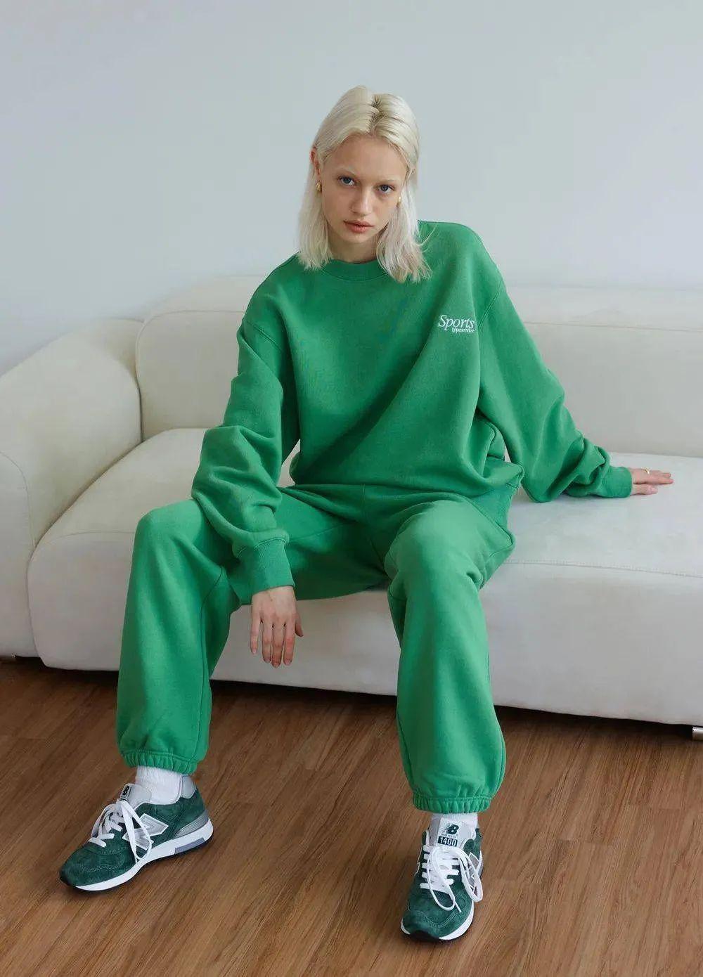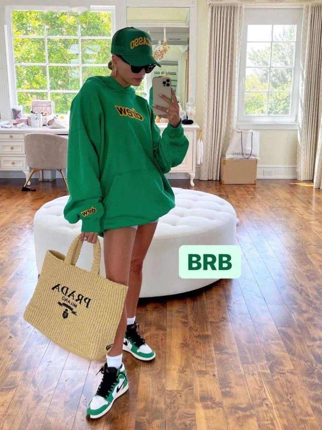 Of course, no matter what time, a green sweatshirt and blue jeans are also a perfect match.