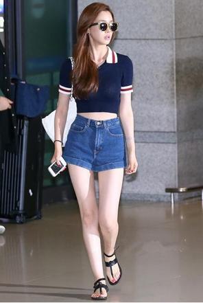 Short navel-baring Polo shirt, a classic summer outfit that shows off your good figure. The lower body is shorts and flat shoes, simple and comfortable.