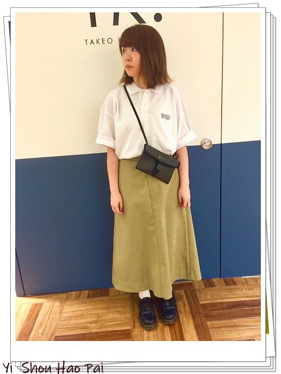 Pair a beige long skirt under a white polo shirt to create a casual feel. Add a touch of sophistication to a childish look by adding a black bag and black shoes. Since it is casual wear, it is also recommended for holiday shopping.