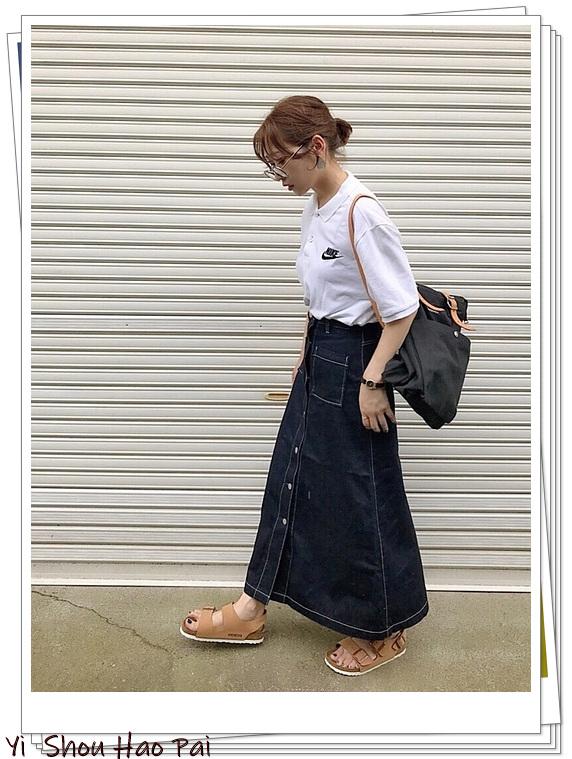 If you pair a white polo shirt with a denim skirt, you will become a casual and fashionable mature woman. With sandals and leather bags, you can upgrade your outfit in a mature atmosphere.