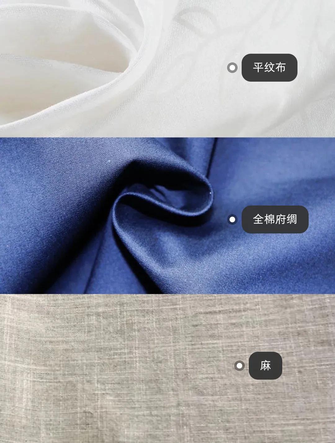 ■Poplin: also known as grosgrain, the grain effect of the cloth is particularly obvious, the texture is tight and firm, the hand feels stiff and smooth, and has a silk-like luster. It is suitable for men’s and women’s coats, uniforms, summer trousers, windbreakers, jackets and other clothing materials