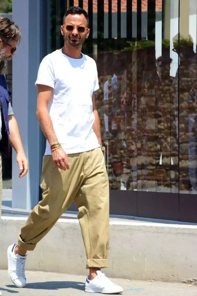 If you don’t know how to choose, then it is safest to choose a heavy T-shirt. Pair it with khaki pants and a pair of white sneakers. No one else has this refreshing feeling.