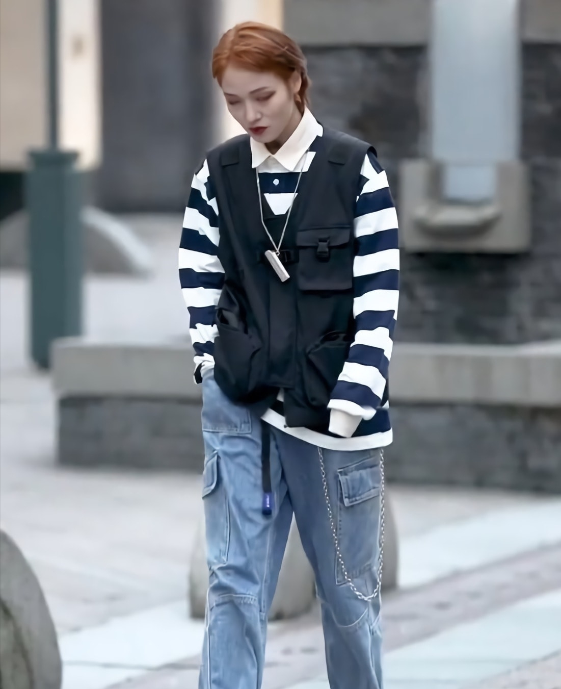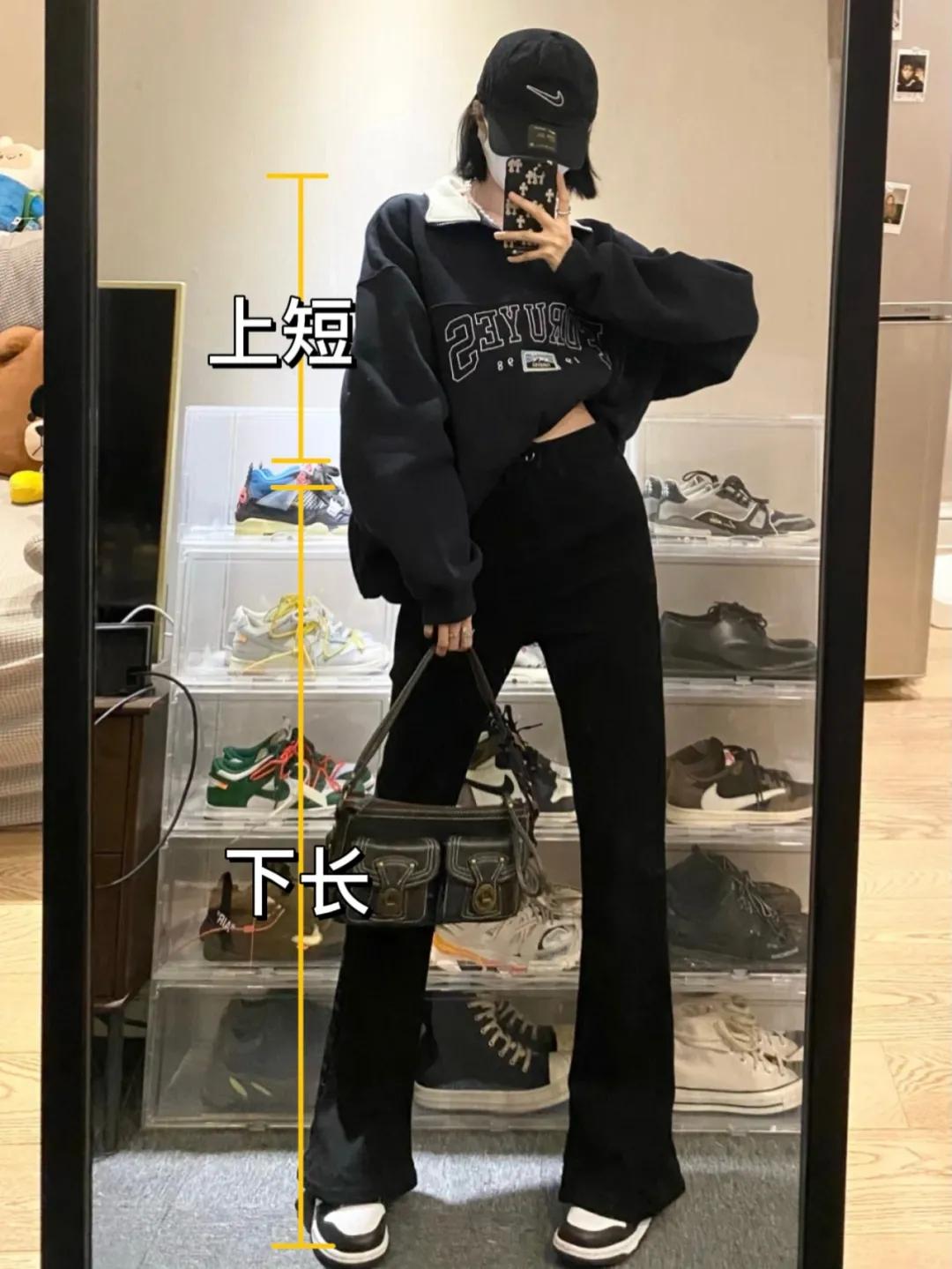 The easiest way to change the proportion is to wear it short at the top and long at the bottom. Generally speaking, it means to choose a sweatshirt that is long on the abdomen for the upper body, and a longer pair of bootcut pants or wide-leg pants for the lower body. Create the effect that everything below the clothes is legs.