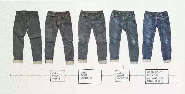 The second is “fading”. Raw cows pay attention to “raising”. Natural plant-dyed denim (Indigo) will show different fading colors during the wearing process. It is also the birth process of a new pair of jeans, which is called “raising”.