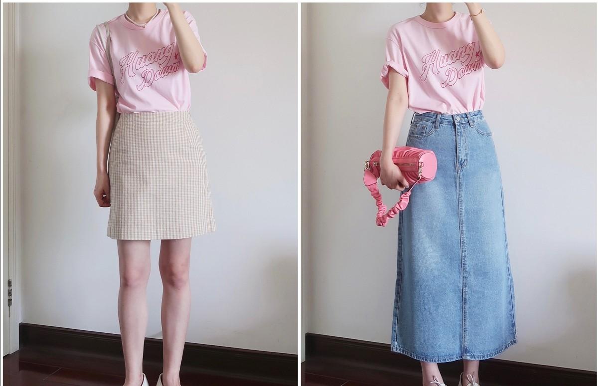 T-shirts can be used to match skirts of different lengths. If you are not so confident about your figure, you might as well wear a long skirt to cover up and ensure that body defects are modified.