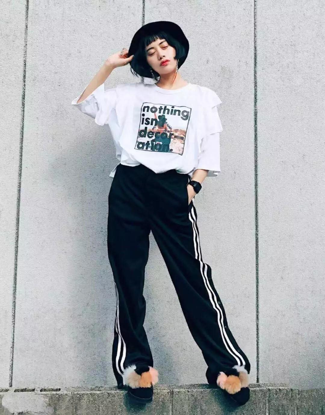 If we want to wear short-sleeved T-shirts with a novel feel, we should learn from the young lady in the photo and choose for ourselves I wore a multi-short-sleeved T-shirt. Although it looked redundant, the loose casual pants paired with the lower body perfectly covered up this flaw.