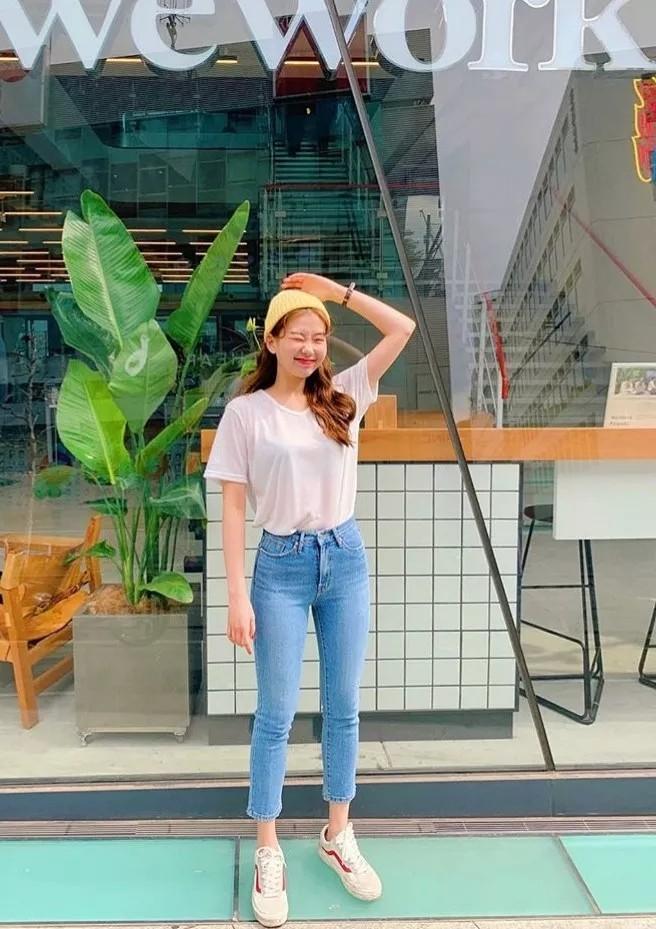 Tight-fitting jeans are most suitable for girls with thin legs and thin waists, but we also need to wear a loose-fitting shorts on the upper body. Sleeve T-shirts are fine. Short-sleeved T-shirts don’t need to be too flamboyant, just light solid colors are fine.