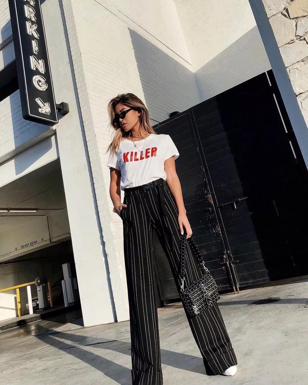 Short-sleeved T-shirts can be said to be the most versatile outfit in summer clothing. When we change the style of short-sleeved T-shirts on the upper body, the following The matching of outfits should also be changed accordingly. The style of “T-shirt + wide-leg pants” is also very good.