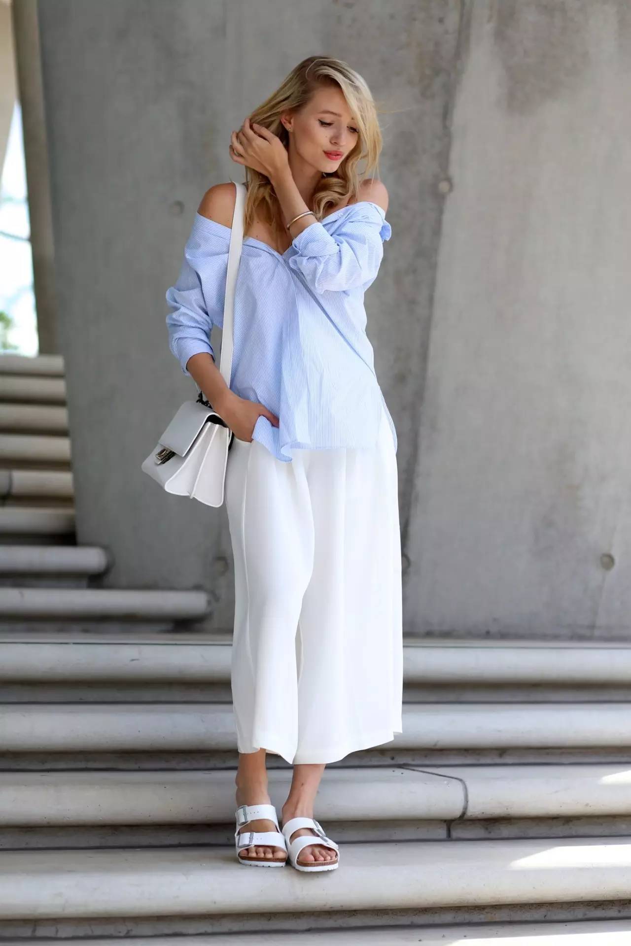 Another element of the lazy style is the dropped shoulder cut. Many people feel that the dropped shoulder design will make them look bulky and unmanageable. In fact, on the contrary, off-shoulder clothes are very slimming. The top with dropped shoulder design is loose and comfortable to wear without any sense of restraint. It can not only hide the fat on the shoulders and arms, but also can make even a fat girl look slimmer immediately when wearing it. Drop-shoulder tops have also been very popular in recent years. Their loose silhouette and lazy tone make you stand out from the crowd with their natural and casual style.