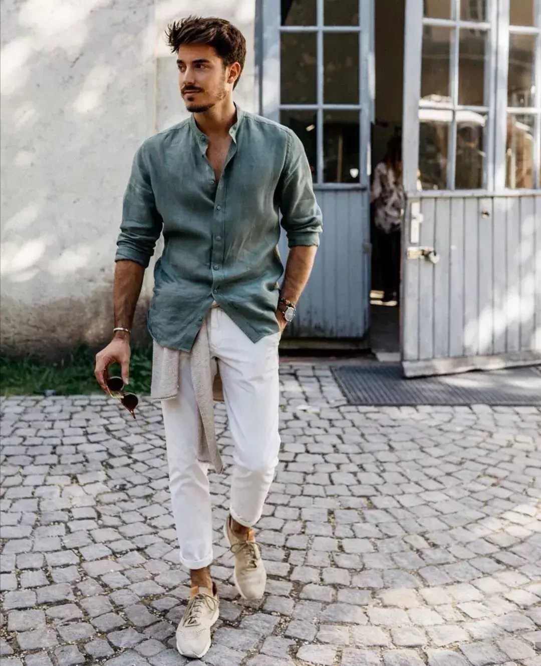 There are many minefields, such as the popular Chinese style on Taobao and the ethnic style of wide robes and long sleeves. Clean and sharp tailoring is the way to go for linen. It can be slightly looser, between fit and oversize, for the best effect.