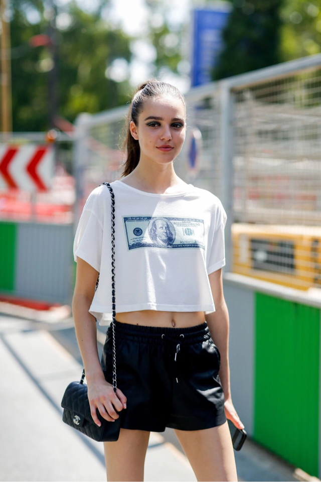A short T-shirt paired with high-waisted shorts is fashionable and simple, and can be worn in various ways Suitable for all occasions. In fact, clothes are just decoration at most, and a good figure is the capital to be beautiful and commit crimes.