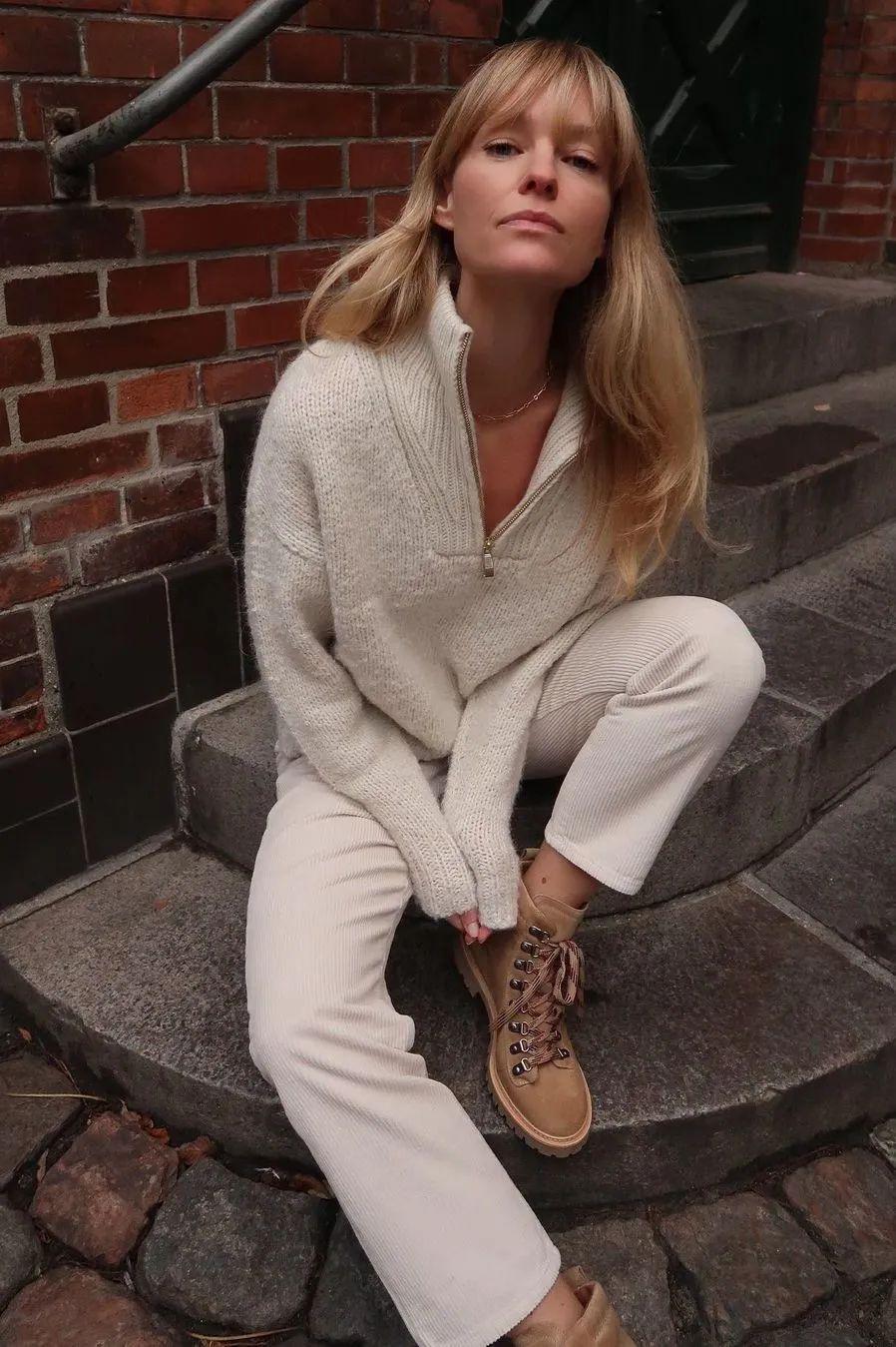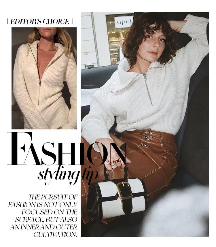 The reason why dressing experts are interested in this style of sweater It’s very popular because it can be layered with various items to create a rich layering in autumn and winter. In terms of matching, solid color sweaters are too ordinary. A lapel can make an ordinary sweater instantly fashionable.