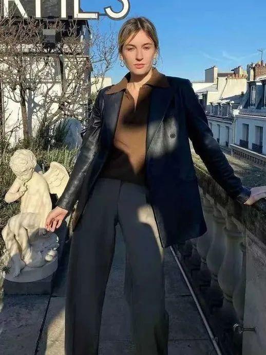 This style of sweater is better matched with trousers. It has a French softness when paired with jeans and overalls. Leather pants and leather pants are a cool must-have for cool girls in winter.