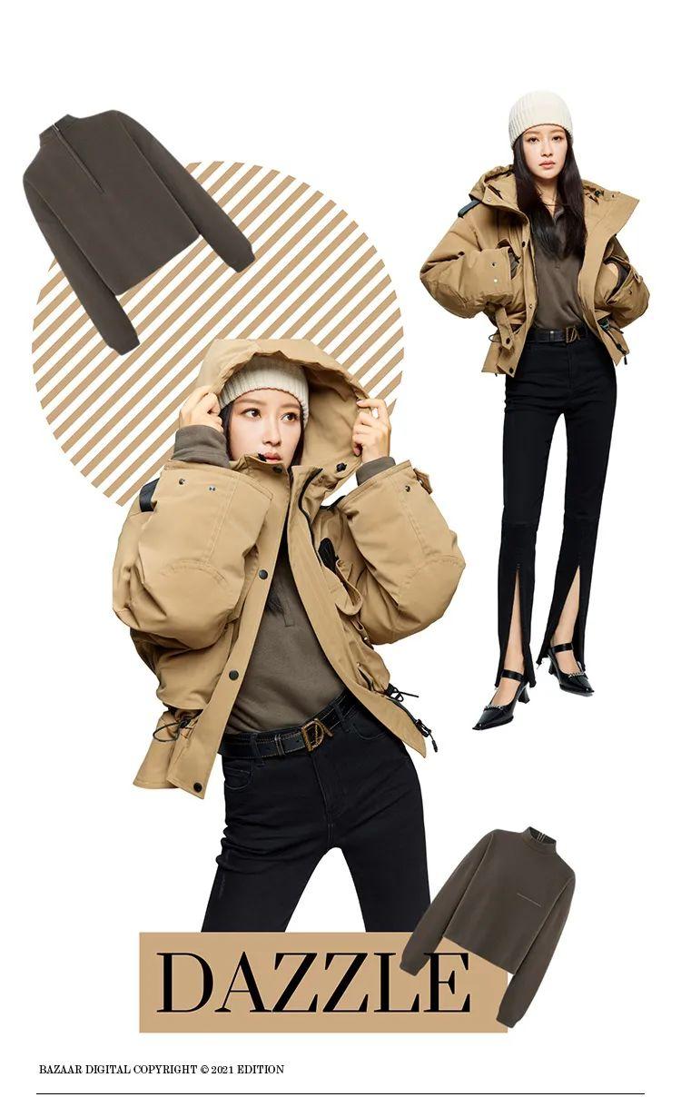 Sun Yi, who was recently announced as the brand ambassador by DAZZLE, wore a Polo collar sweatshirt that can be worn reversibly. , when worn from the front, it becomes an ordinary sweatshirt with a small stand-up collar, and when worn from the back, it becomes the most popular Polo collar sweatshirt. Paired with a technical jacket and a beanie, this fall and winter combo won’t be too warm.