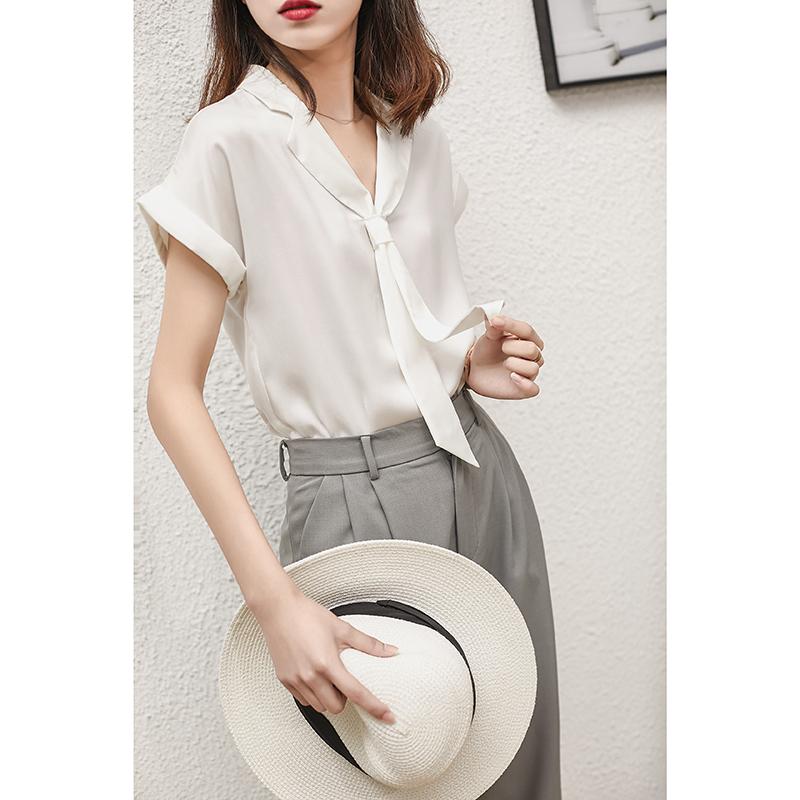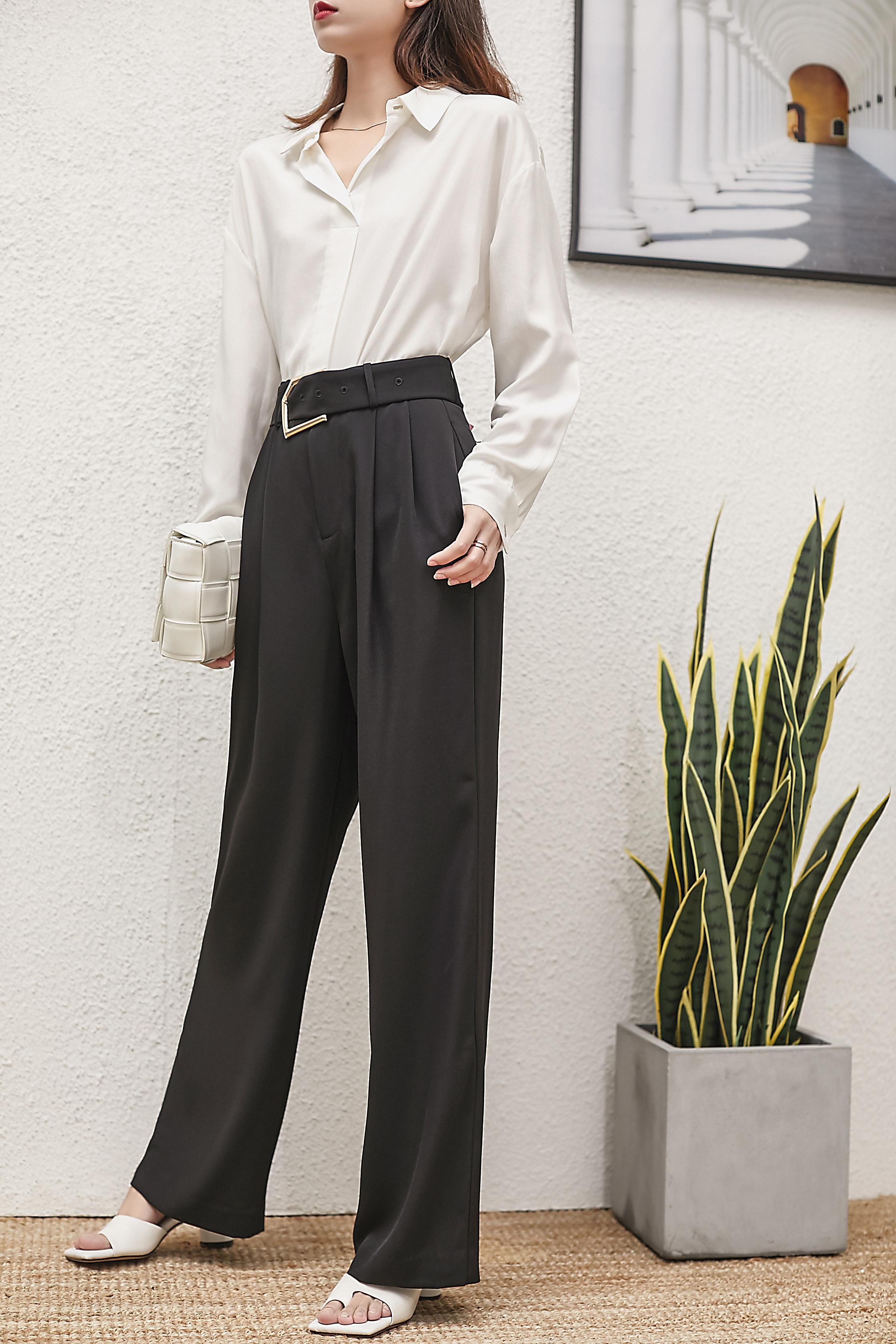 Pairing a shirt with high-waisted wide-leg pants is both high-end and full of elegance.
