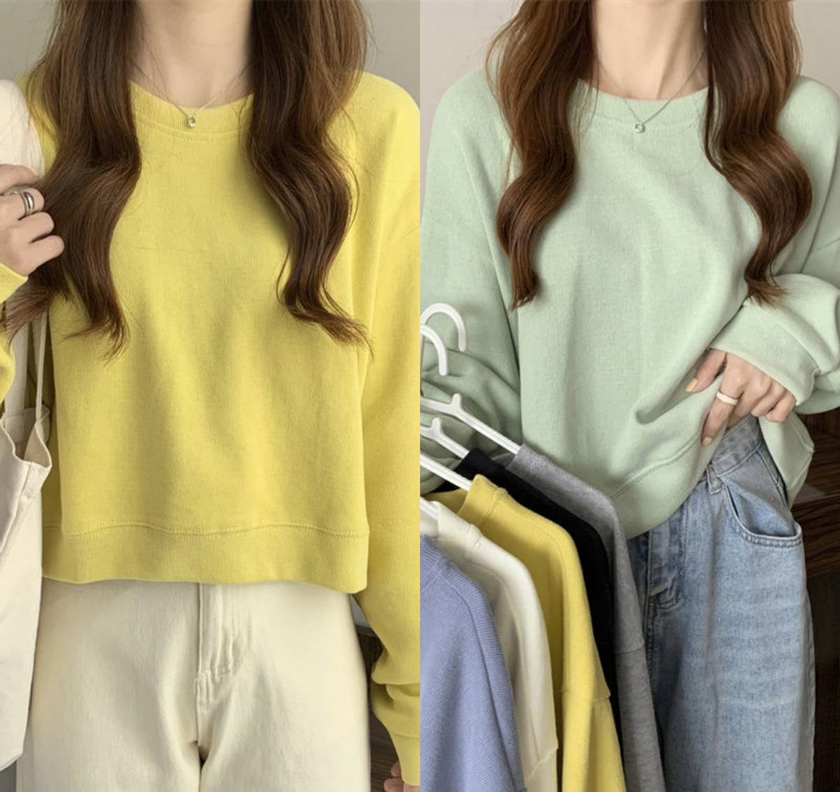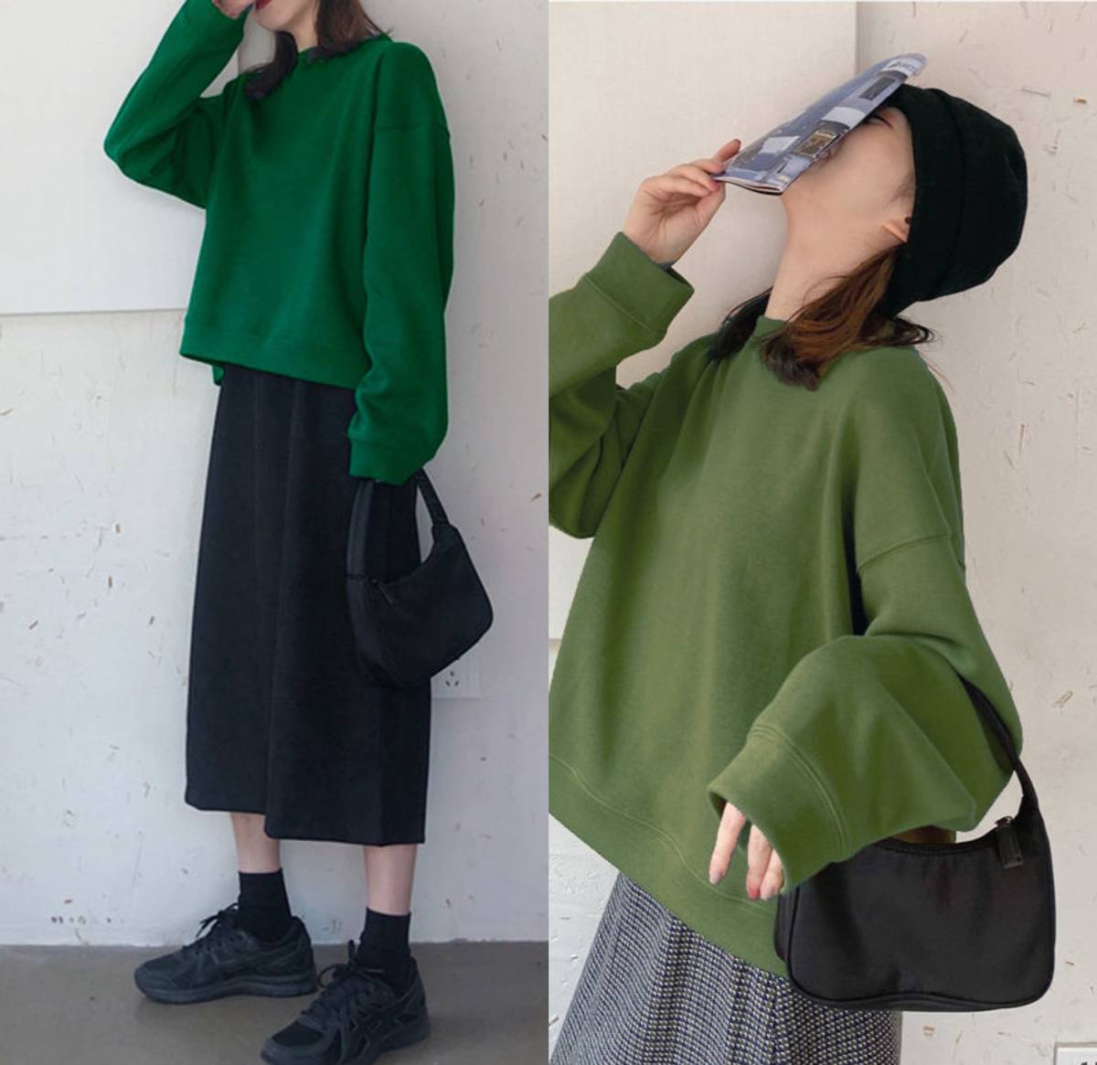 When it comes to the selection of sweatshirts, the overall outlines are similar, but there are more tricks that can be played with in terms of color. You can choose a yellow sweatshirt that is full of vitality, or you can choose green that also reduces age.
