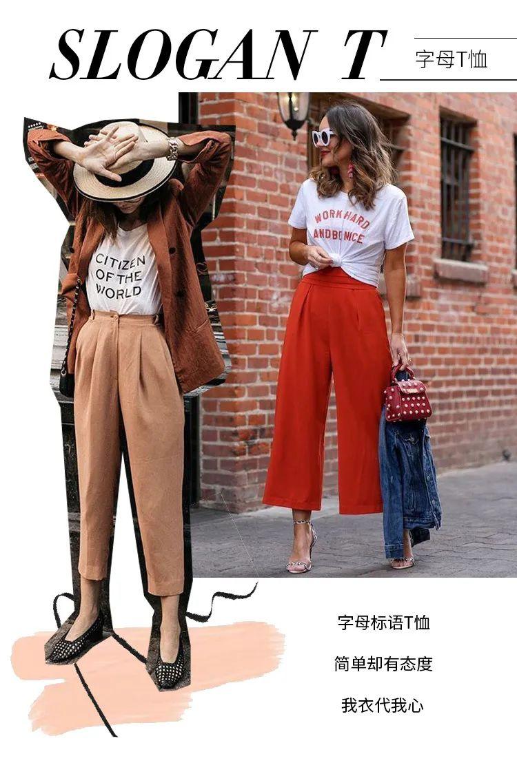 Print T-shirts are very eye-catching, so the bottoms should be low-key and simple, or match the main color of the T-shirt. The same color or contrasting colors are all eye-catching and beautiful.