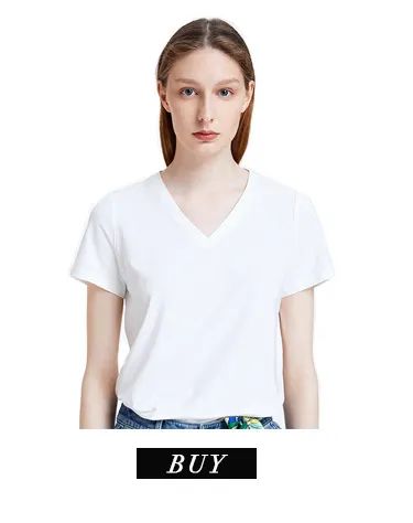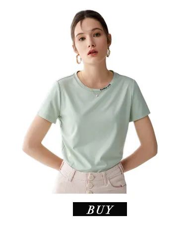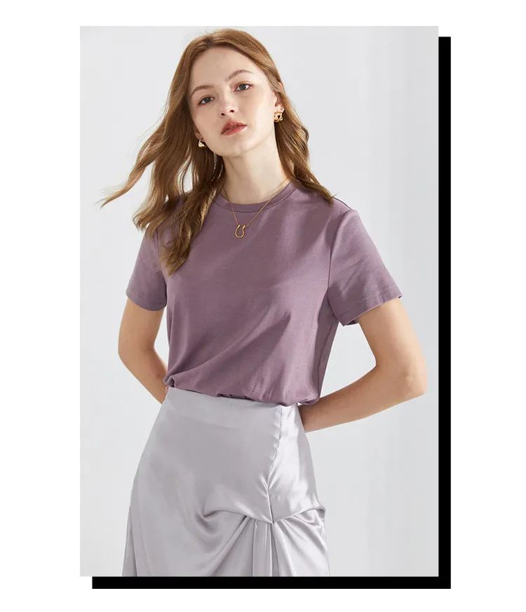 Basic T-shirts can be paired with solid-color bottoms such as jeans and straight skirts. The simple colors give people a unique look. A fresh sense of picture; if your style is bolder, then match it with brightly colored and complexly cut bottoms, and wear it in an orderly manner with “simple top and traditional bottom”.
