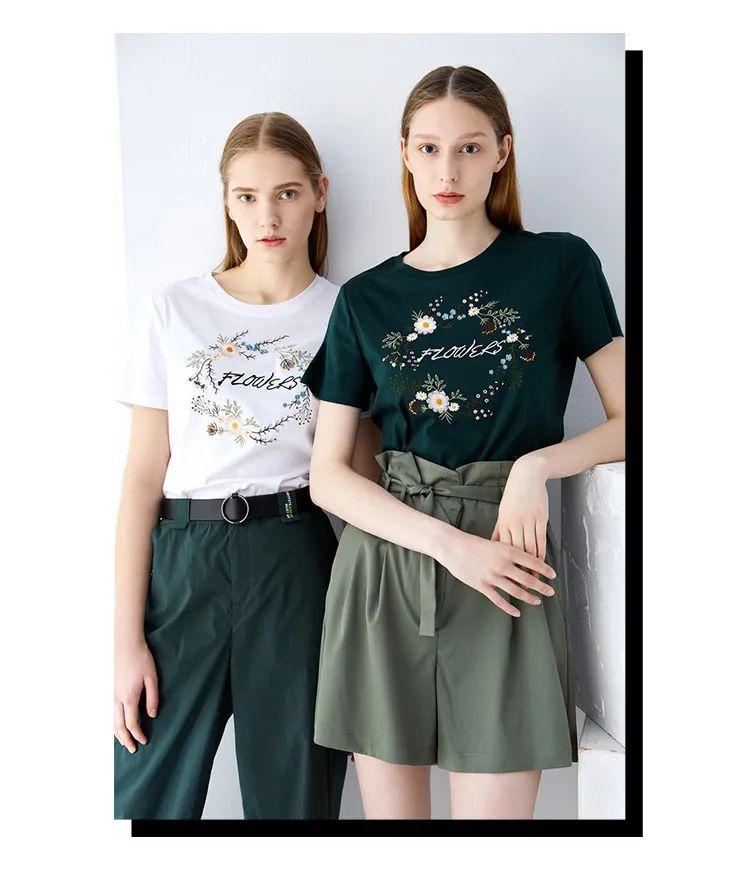 The floral print is fresh and bright, which can relieve the heat in the hot summer; the cartoon print is interesting and can be worn out Lively and age-reducing style; photo printing is very popular this year, directly printing square photos on T-shirts, either landscapes or icon celebrities, with a distinctive personality.