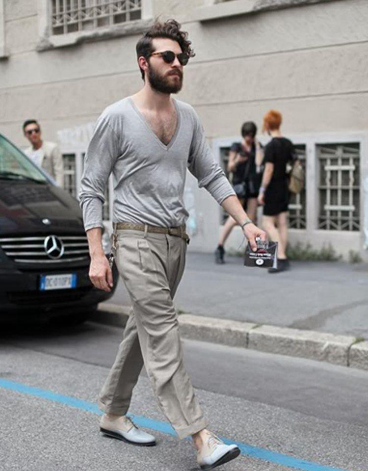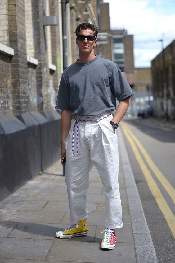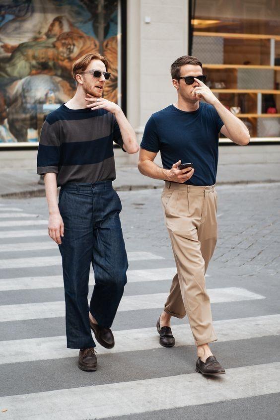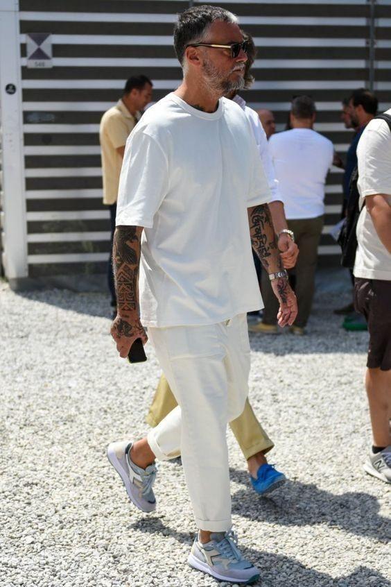 No matter what style, color or style of T-shirt, it should not be too tight. It exposes body defects and looks very greasy. Fat people wear tight T-shirts, leaving their beer belly nowhere to hide; thin people wear tight T-shirts, and no man is a bit “girly”; even a strong man wearing a tight T-shirt will look artificial!
