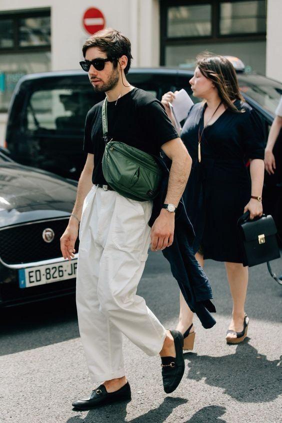 In order to solve the problem of loose T-shirts without waistlines, you can use “stuffed hems” The way of dressing is to use techniques to achieve shaping proportions. Tuck the hem of the T-shirt into the waistband of the trousers to instantly emphasize and raise the waistline, and at the same time elongate the leg lines, creating a perfect 37-point figure, making you appear taller and slimmer.
