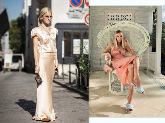 Light-colored satin fabrics have warm tones, giving people a gentle feeling. Suitable for sweet-looking girls, it is very suitable for summer. Under the scorching sun, a light-colored satin skirt is very eye-catching.