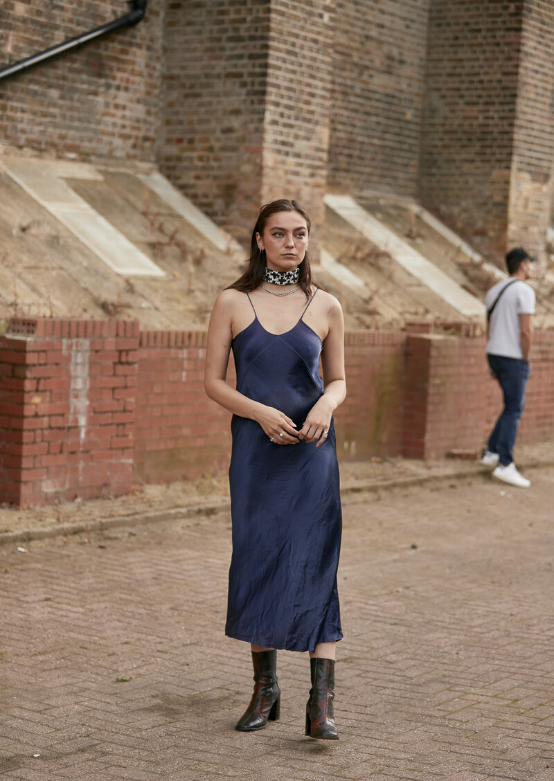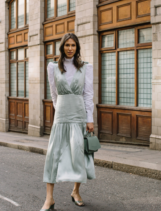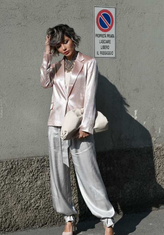 Although satin clothing has many advantages, it does not show off your figure. Smooth fabric gives people a dark and bloated look. At this time, it can be paired with a belt, which can well highlight the waist curve.