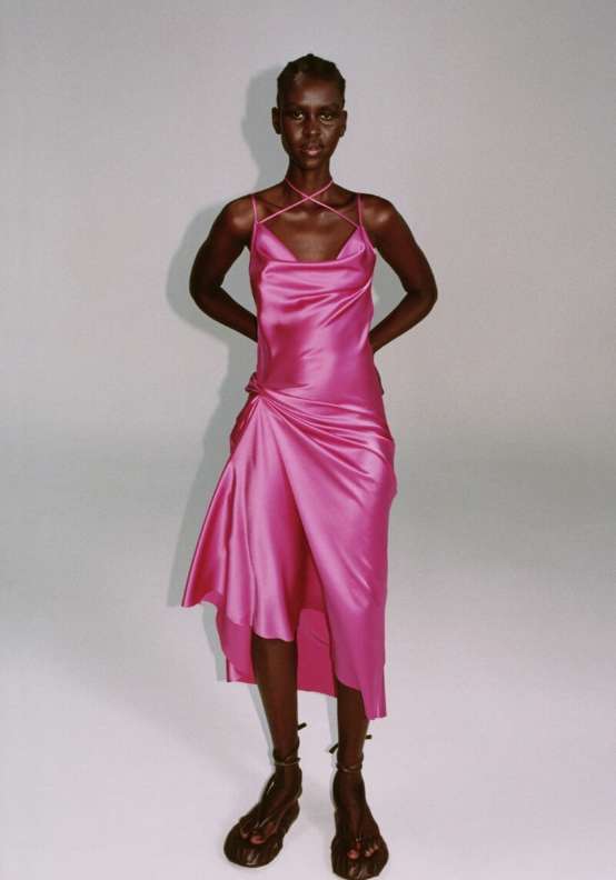 Satin is very cool to wear, goes well with the hot summer, and is suitable for a variety of colors , has a youthful atmosphere and gives people a sense of youth.