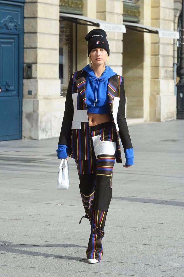 Slender and loose trousers paired with a short and casual sweatshirt. This dressing style has won the favor of many girls. Its The advantage is that short tops not only enhance the waistline, but are also youthful and fashionable. Make the whole person energetic and handsome! Pair a blue sweatshirt with a handsome suit jacket, and your sense of fashion will soar when you walk!