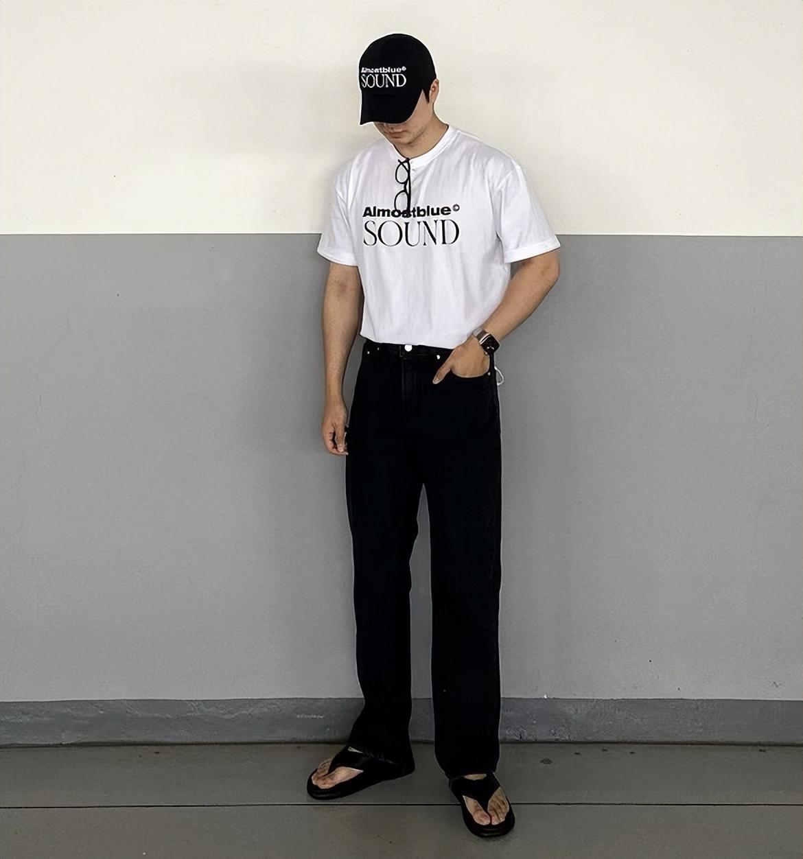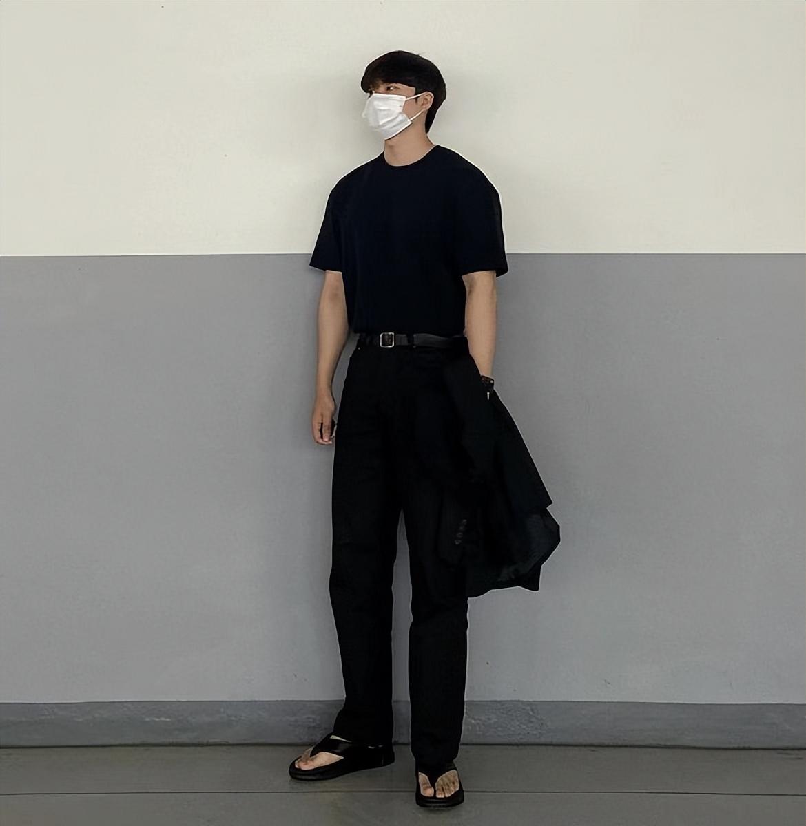 All black The combination gives people an invisible and high-end charm. If you are still thinking about what to wear today, you might as well try this outfit. Classic black T-shirt + black trousers, simple yet high-end.