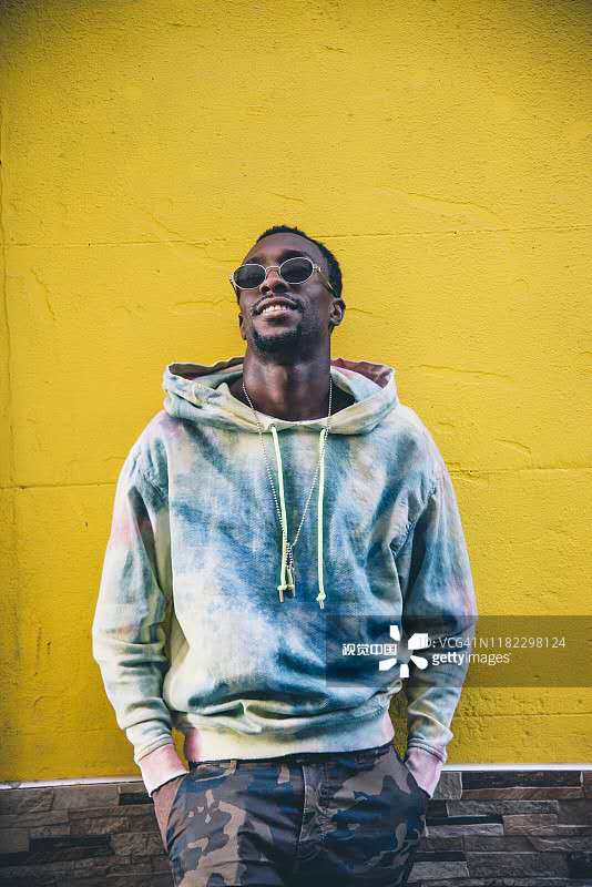 Yellow solid color sweatshirts are suitable for boys with fair skin tones, and the style tends to be literary and fresh. A colorful sweatshirt item with a white basic color and colorful casual graffiti on it. It has a flamboyant personality and is super cool. Pair it with an iron necklace and camouflage pants for a street style look.