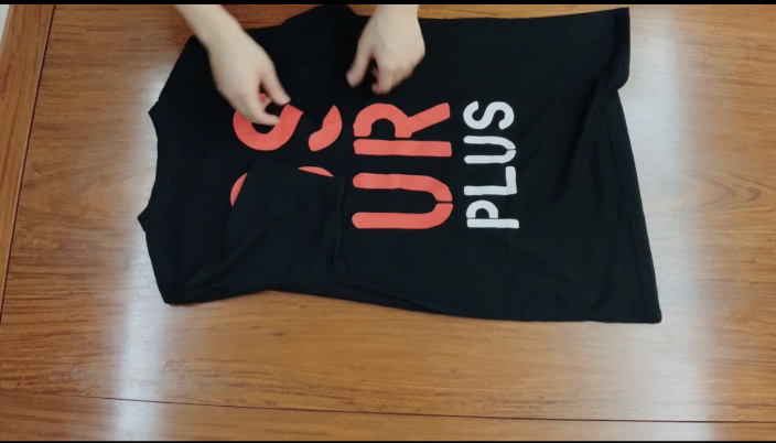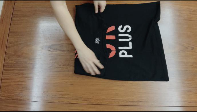 4. Shake the T-shirt, lay it flat and fold it in half.
